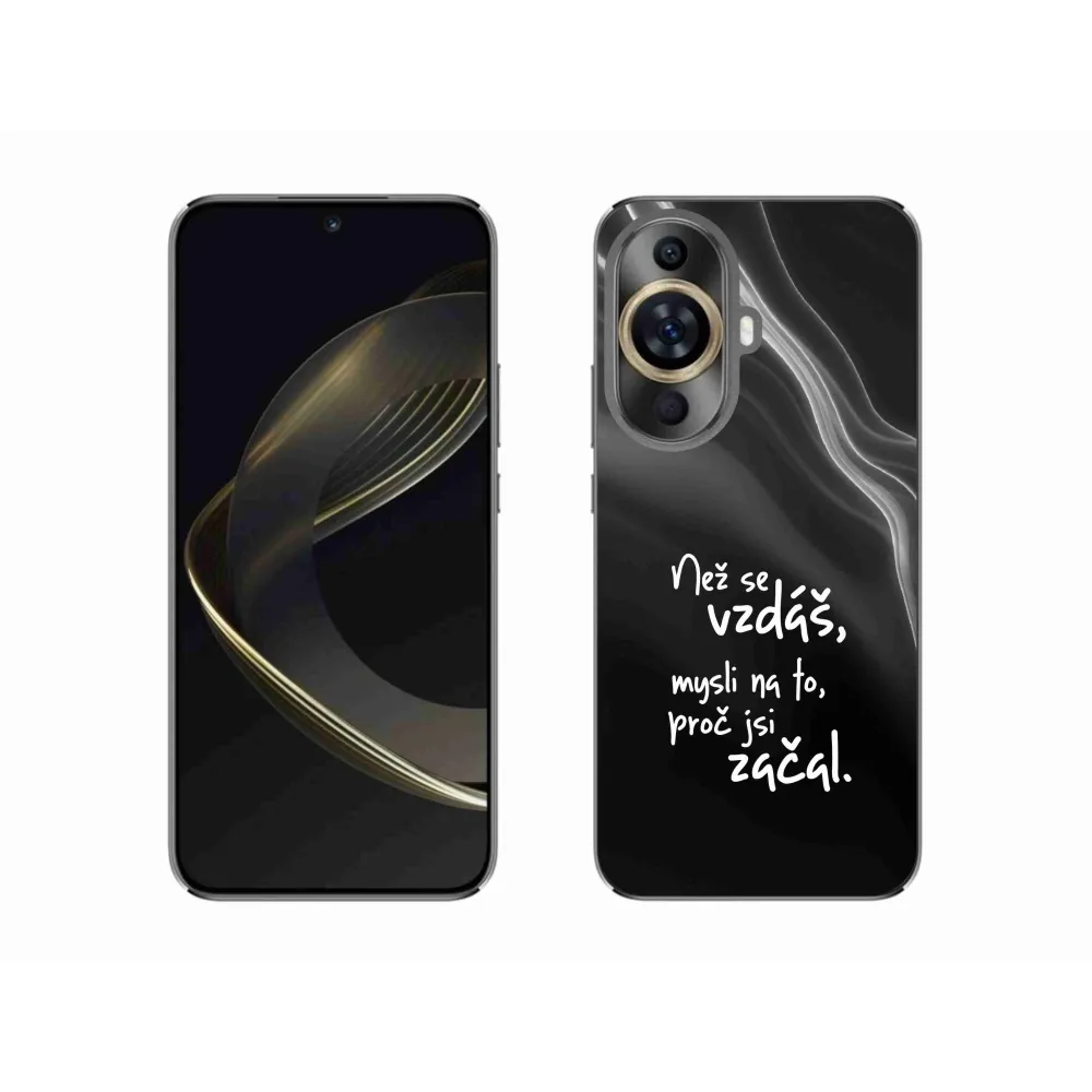 Rugalmas zselés tok mmCase a Huawei Nova 11 képével - idézet 2 fekete háttérrel