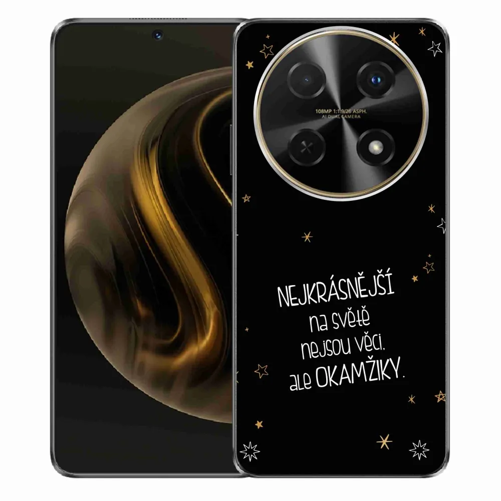 Rugalmas zselés tok mmCase a Huawei Nova 12i képével - idézet 4 fekete háttérrel