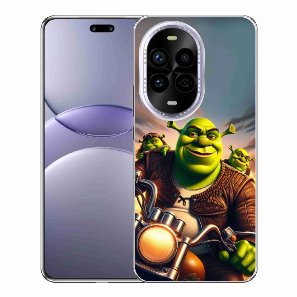 Rugalmas zselés tok mmCase a Huawei Nova 13 Pro 5G képével - Shrek egy motorkerékpáron