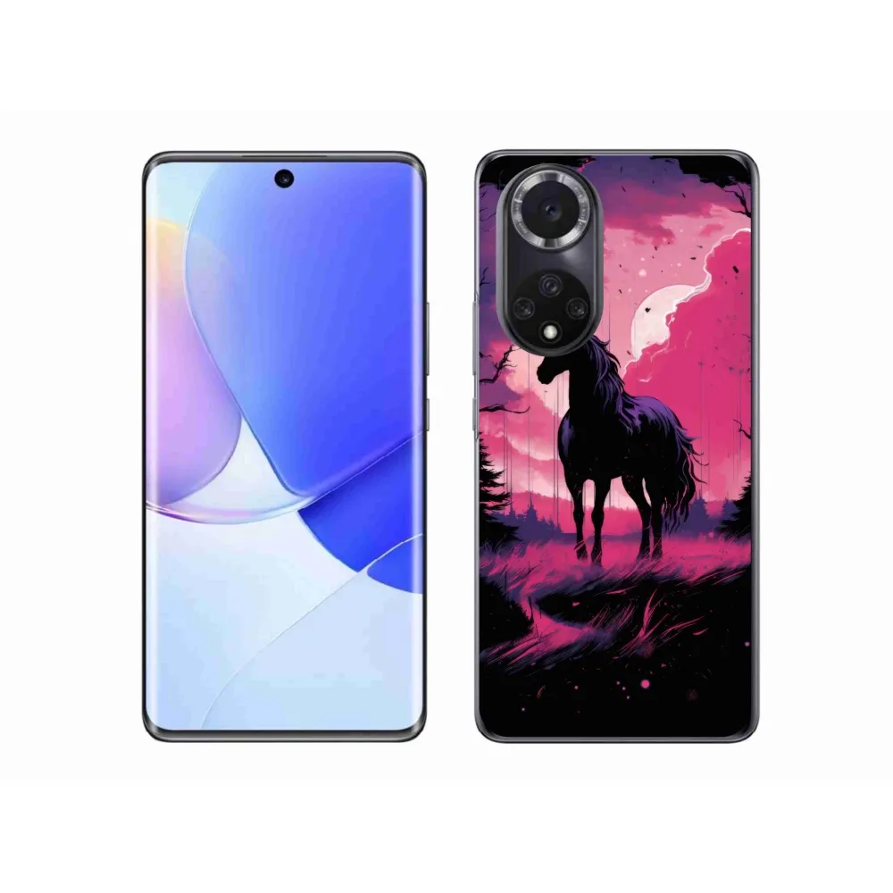 Rugalmas zselés tok mmCase a Huawei Nova 9 képével - fekete rajzfilm ló 1