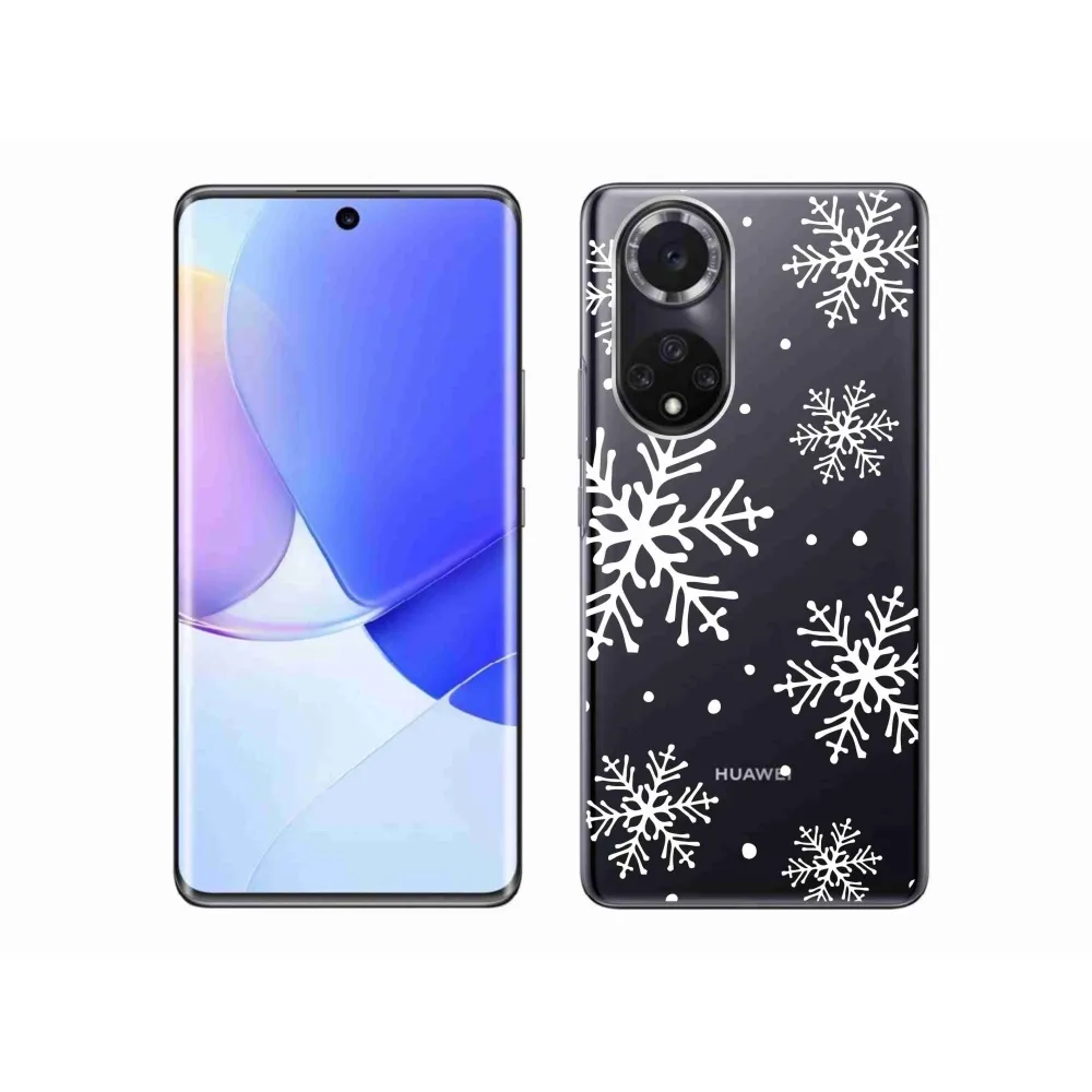 Gél borítás mmCase a Huawei Nova 9 készülékre - fehér pelyhek átlátszó háttéren