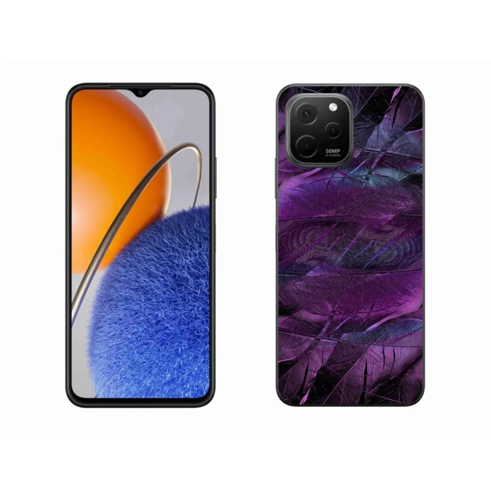Rugalmas gél borítás mmCase motívummal a Huawei Nova Y61-en - lila tollakkal