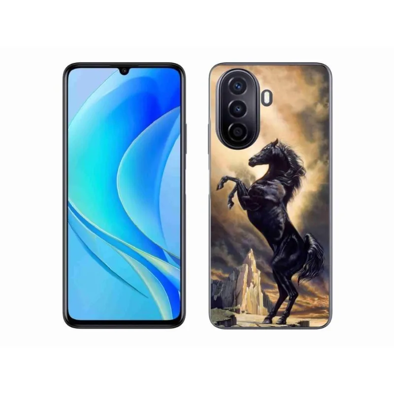 Gél borítás mmCase a Huawei Nova Y70 készülékhez - fekete rajzfilm ló
