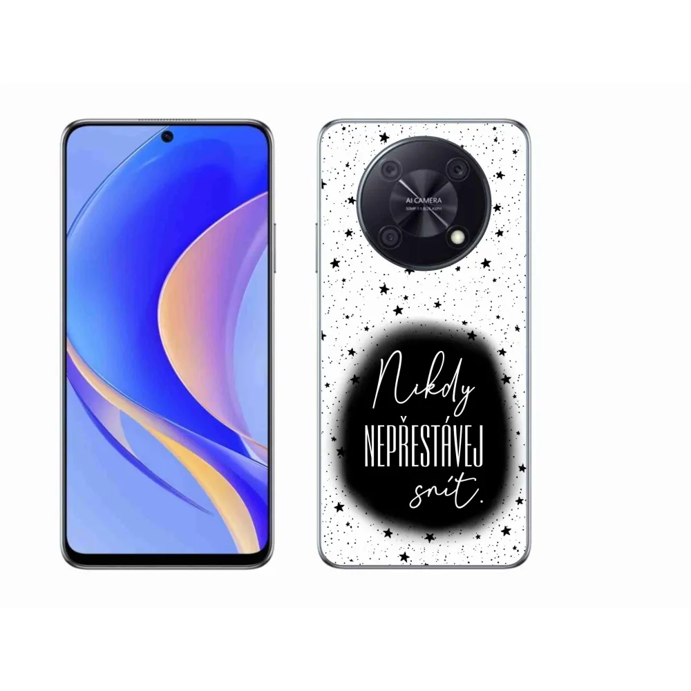 Rugalmas zselés tok mmCase a Huawei Nova Y90 képével - idézet 1 fekete és fehér háttérrel
