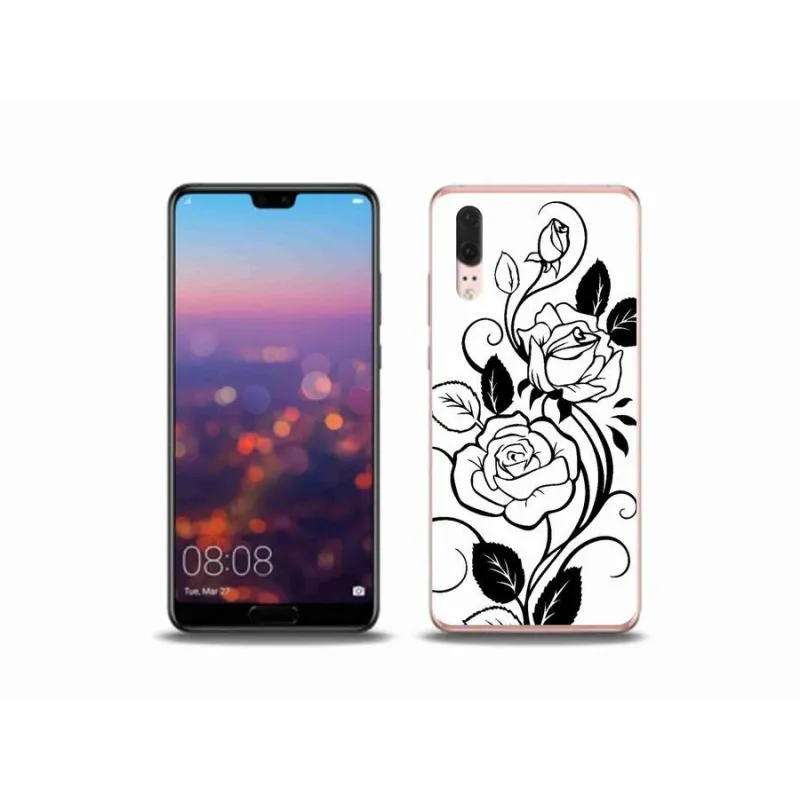 Gél borítás mmCase a Huawei P20 készülékhez - fekete és fehér rózsa