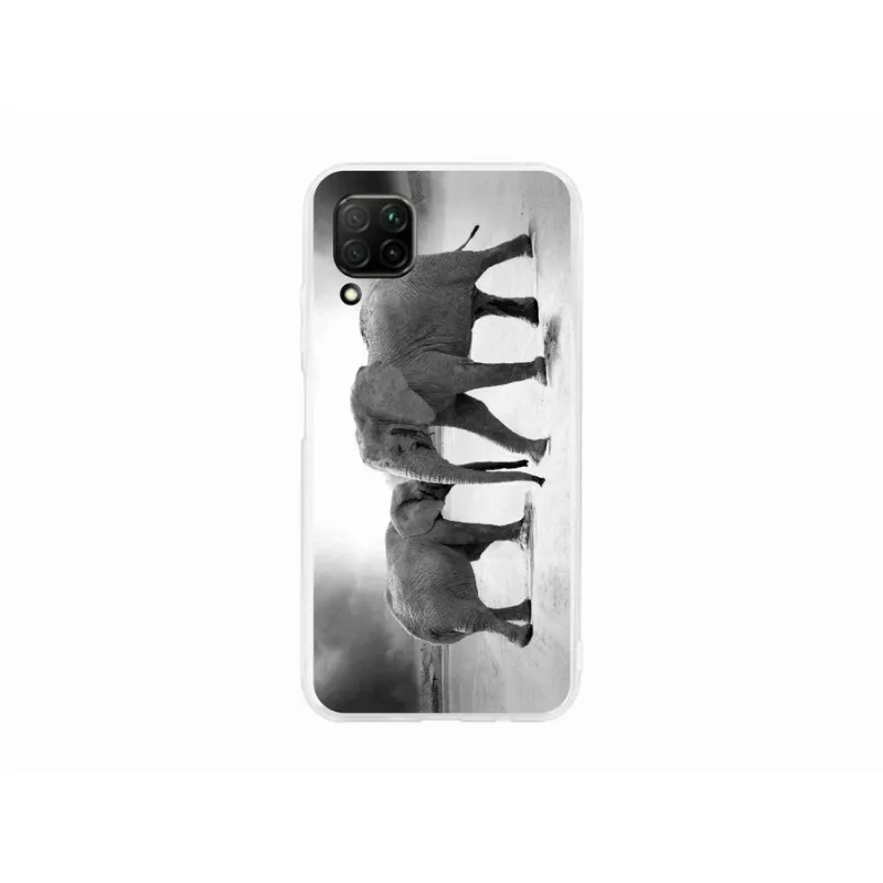 Gél borítás mmCase a Huawei P40 Lite készülékhez - fekete és fehér elefántok