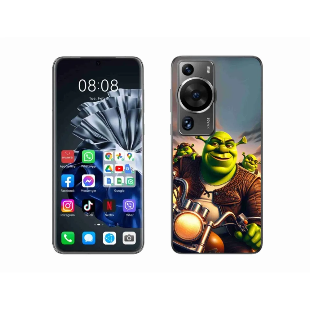 Rugalmas gél tok mmCase a Huawei P60 Pro képével - Shrek egy motorkerékpáron
