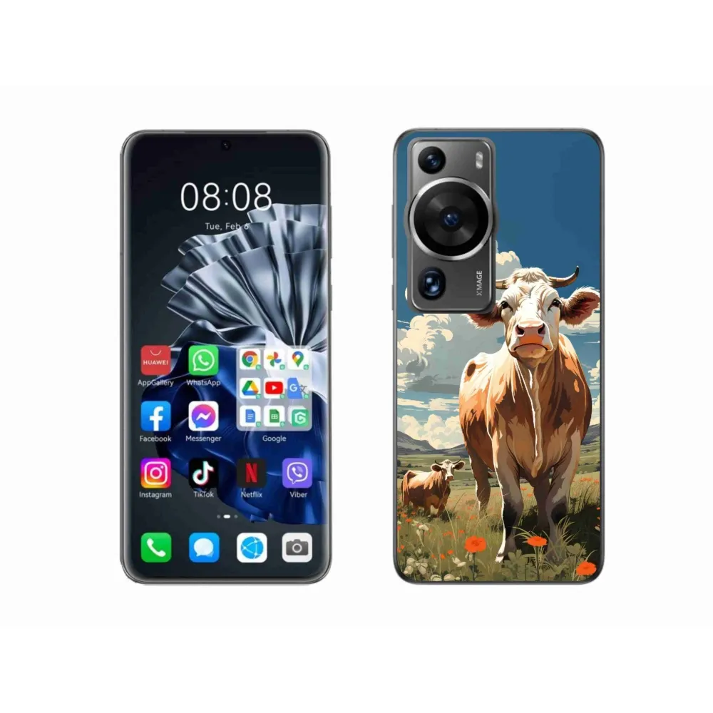 Rugalmas zselés tok mmCase a Huawei P60 Pro képével - tehenek a réten