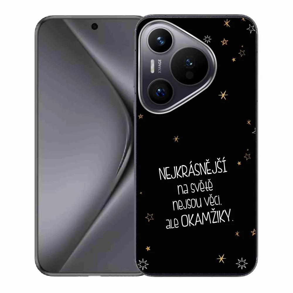 Rugalmas zselés tok mmCase a Huawei Pura 70 képével - idézet 4 fekete háttérrel