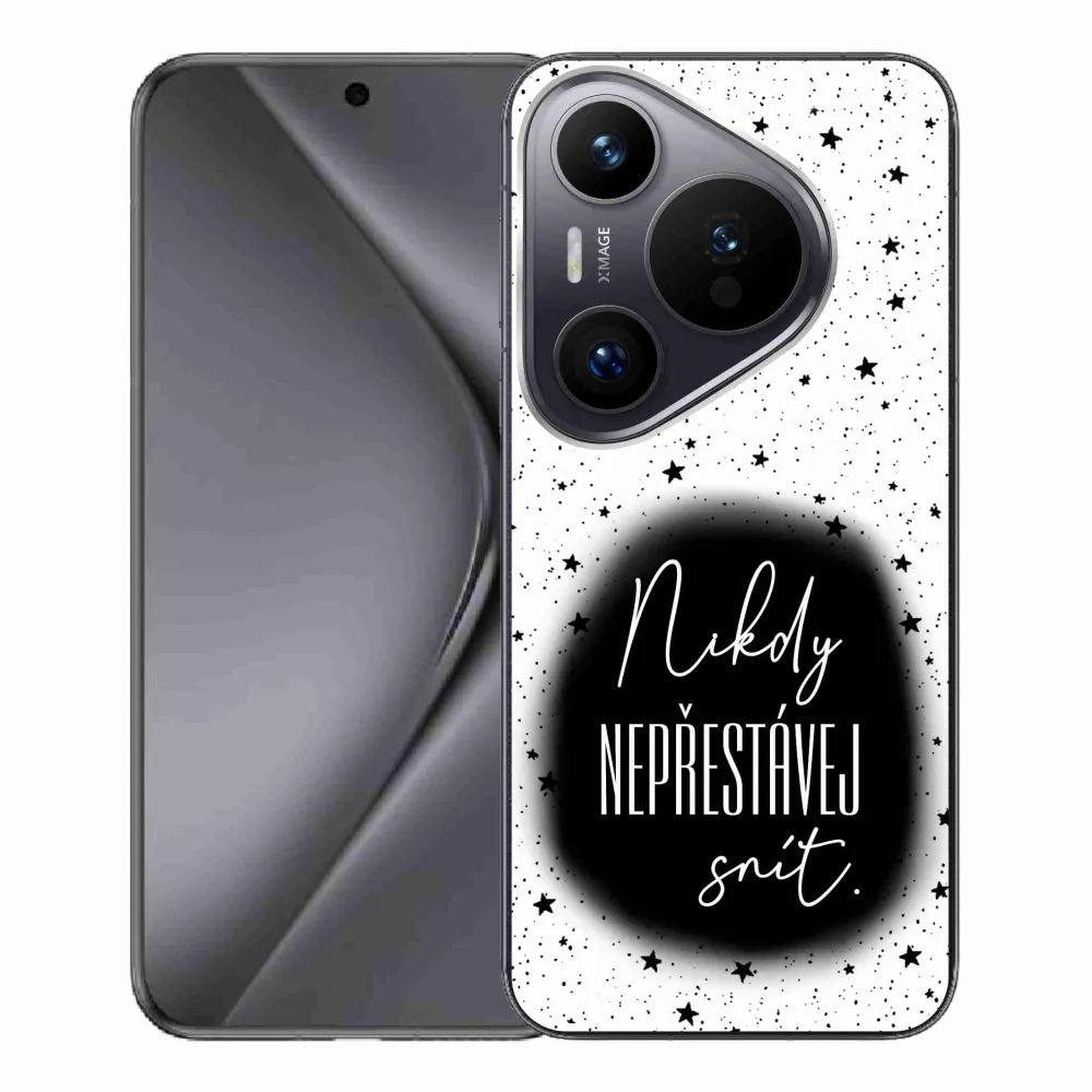 Rugalmas zselés tok mmCase a Huawei Pura 70 Pro képével - idézet 1 fekete és fehér háttérrel