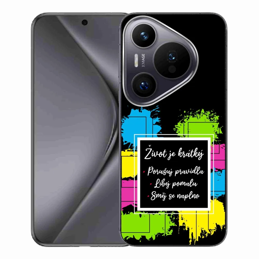 Rugalmas zselés tok mmCase a Huawei Pura 70 Pro képével - idézet 5 fekete háttérrel