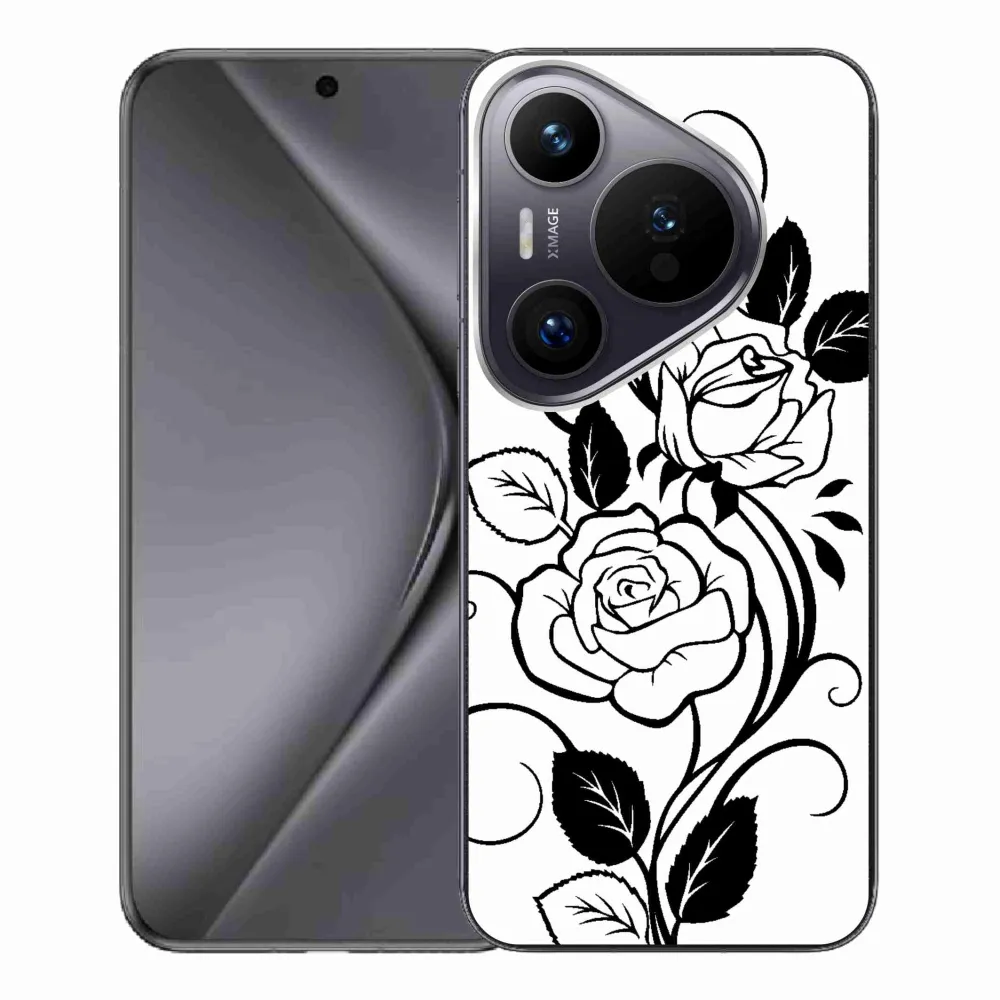 Rugalmas zselés tok mmCase a Huawei Pura 70 Pro képével - fekete és fehér rózsa