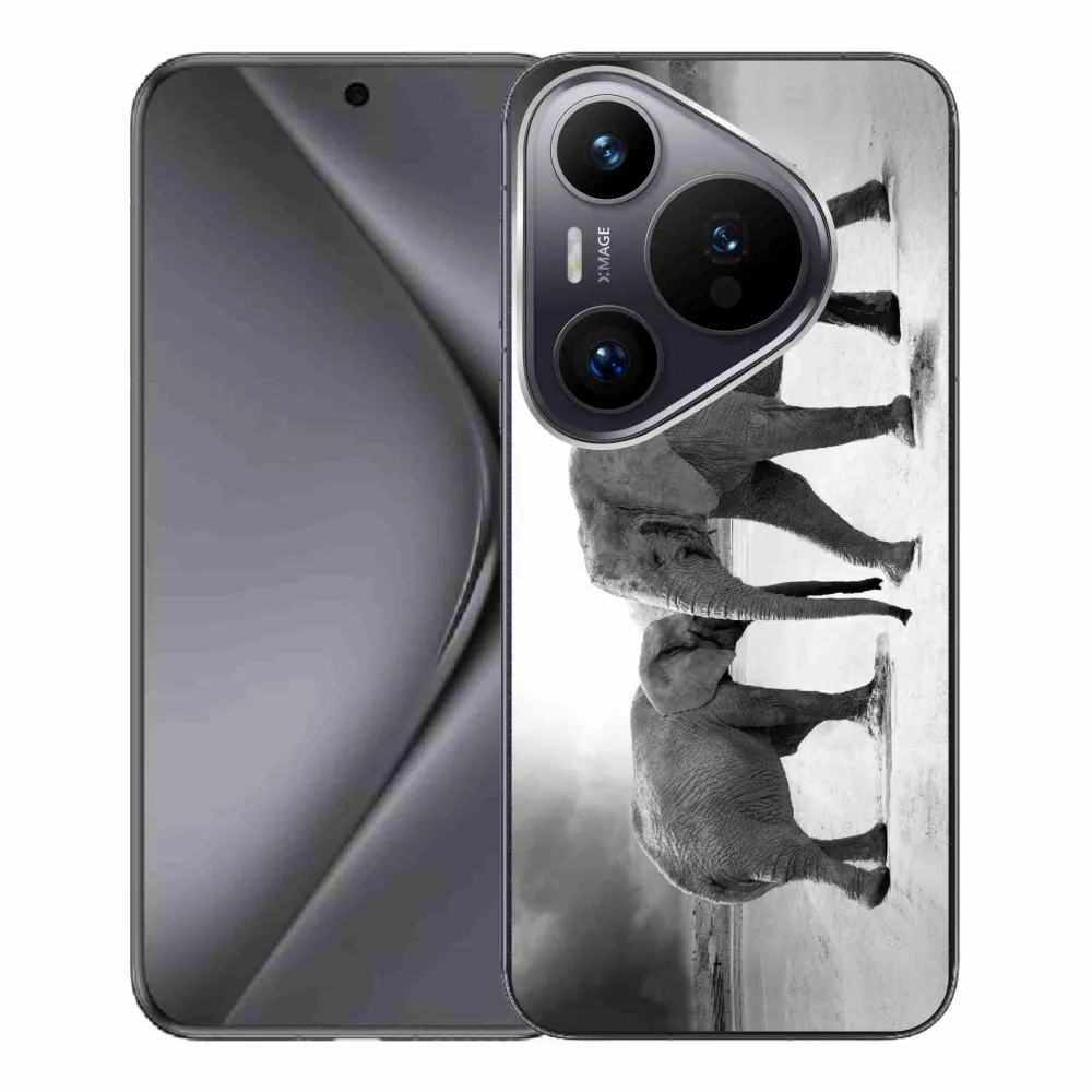 Rugalmas zselés tok mmCase a Huawei Pura 70 Pro képével - fekete és fehér elefántok