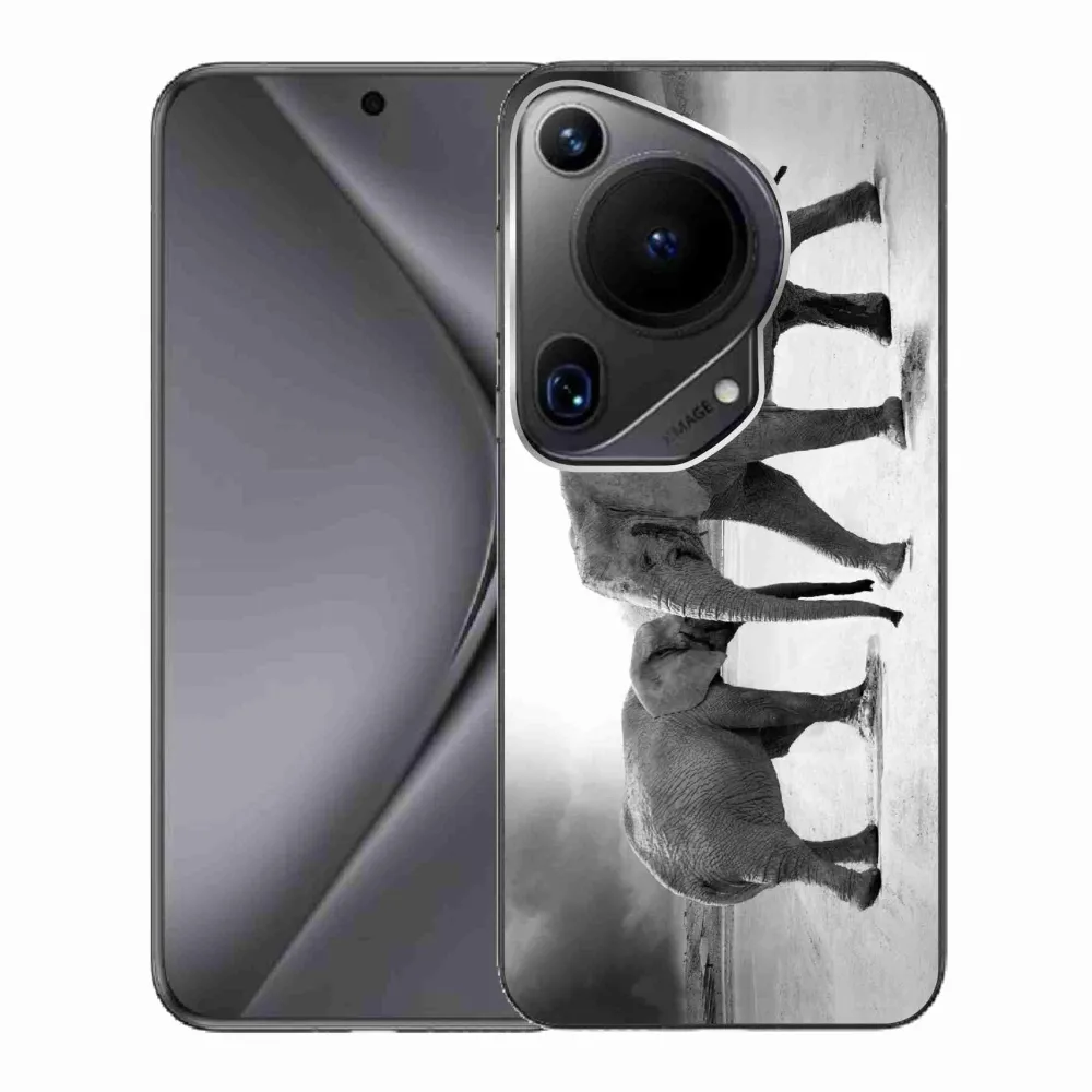 Rugalmas zselés tok mmCase a Huawei Pura 70 Ultra képével - fekete és fehér elefántok