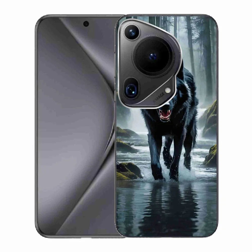 Rugalmas zselés tok mmCase a Huawei Pura 70 Ultra képével - fekete farkas