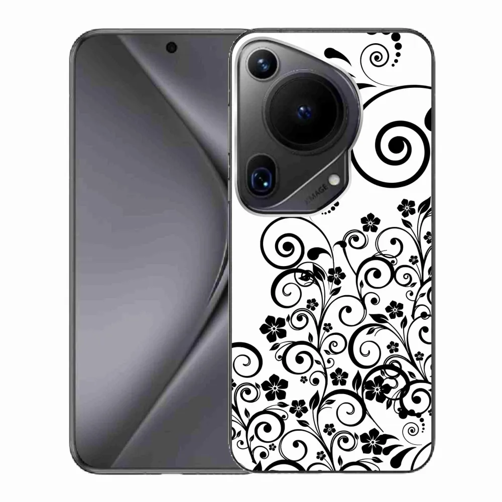 Rugalmas zselés tok mmCase a Huawei Pura 70 Ultra képével - fekete és fehér virágminták