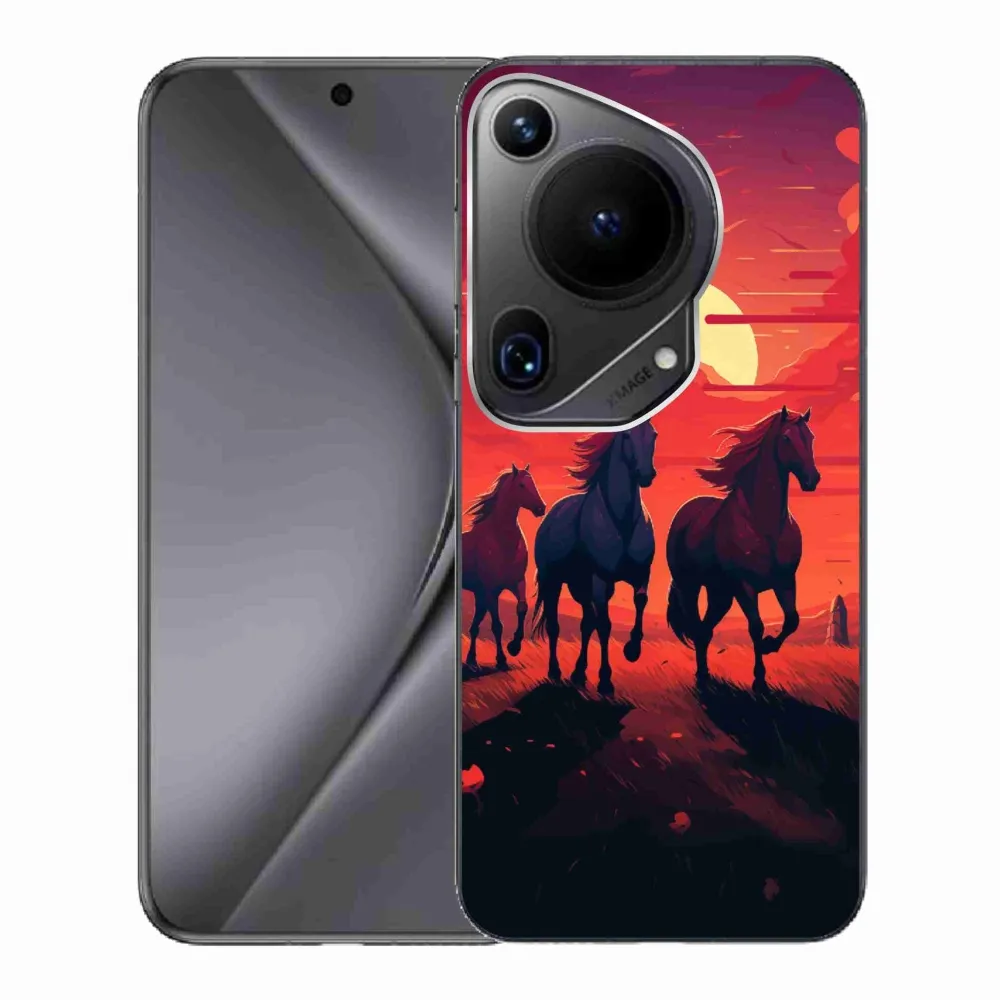 Rugalmas zselés tok mmCase a Huawei Pura 70 Ultra képével - lovak és naplemente