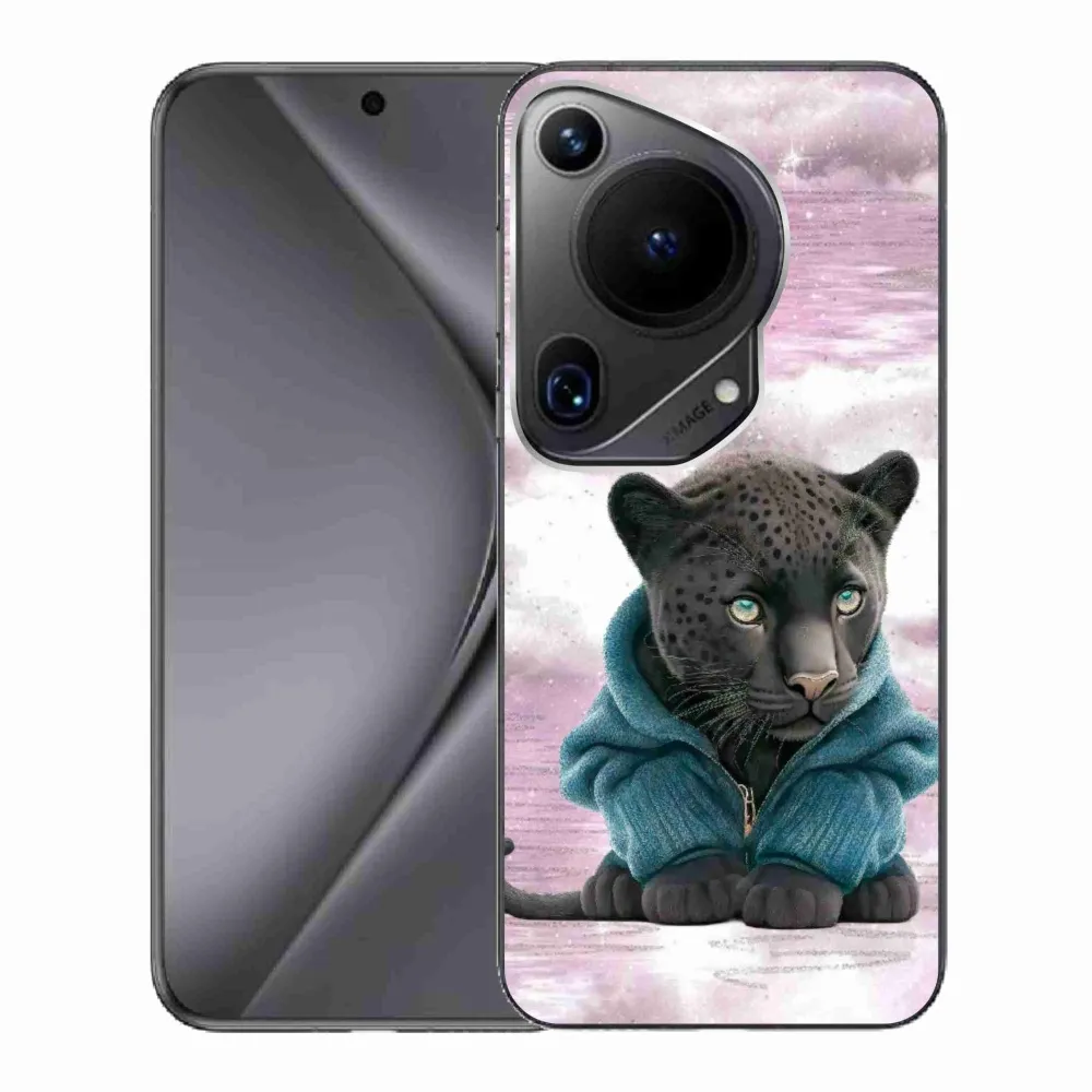 Rugalmas zselés tok mmCase a Huawei Pura 70 Ultra képével - fekete párduc pulóverben