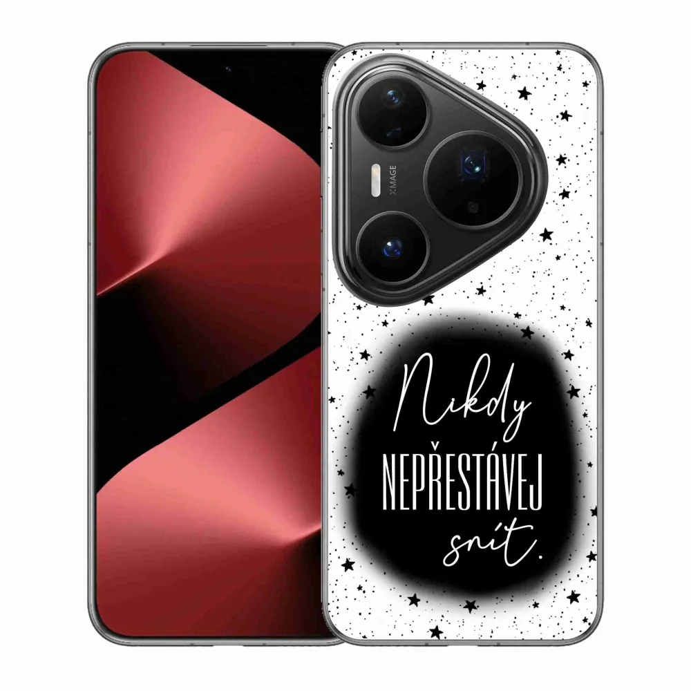 Rugalmas zselés tok mmCase a Huawei Pura 80 Pro képével - idézet 1 fekete és fehér háttérrel