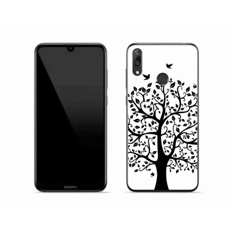 Gél borítás mmCase a Huawei Y7 (2019) - fekete-fehér fa számára