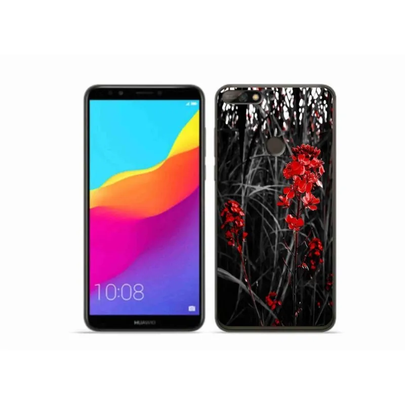 Gél borítás mmCase a Huawei Y7 Prime (2018) - piros növényhez