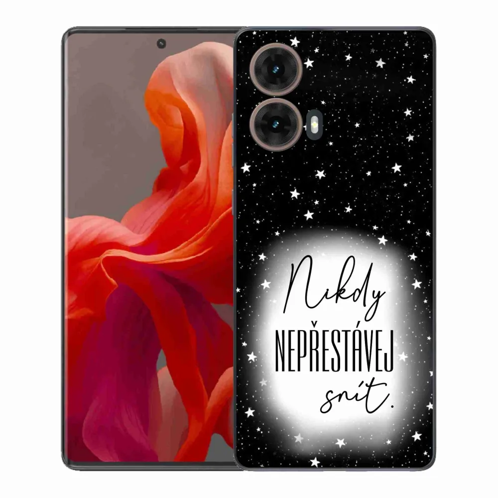 Rugalmas zselés tok mmCase a Motorola Moto G85 5G képével - idézet 1 fehér és fekete háttérrel