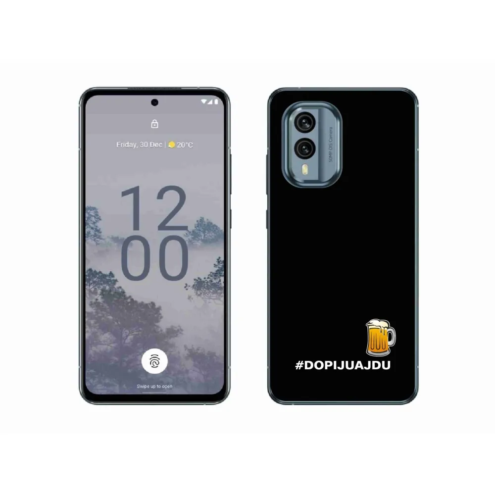 Rugalmas zselés tok mmCase a Nokia X30 5G képével - sör motívum 1 fekete háttérrel