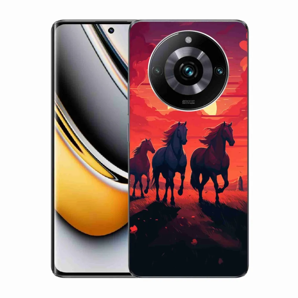 Rugalmas zselés tok mmCase képpel a Realme 11 Pro/11 Pro+ - lovak és naplemente számára