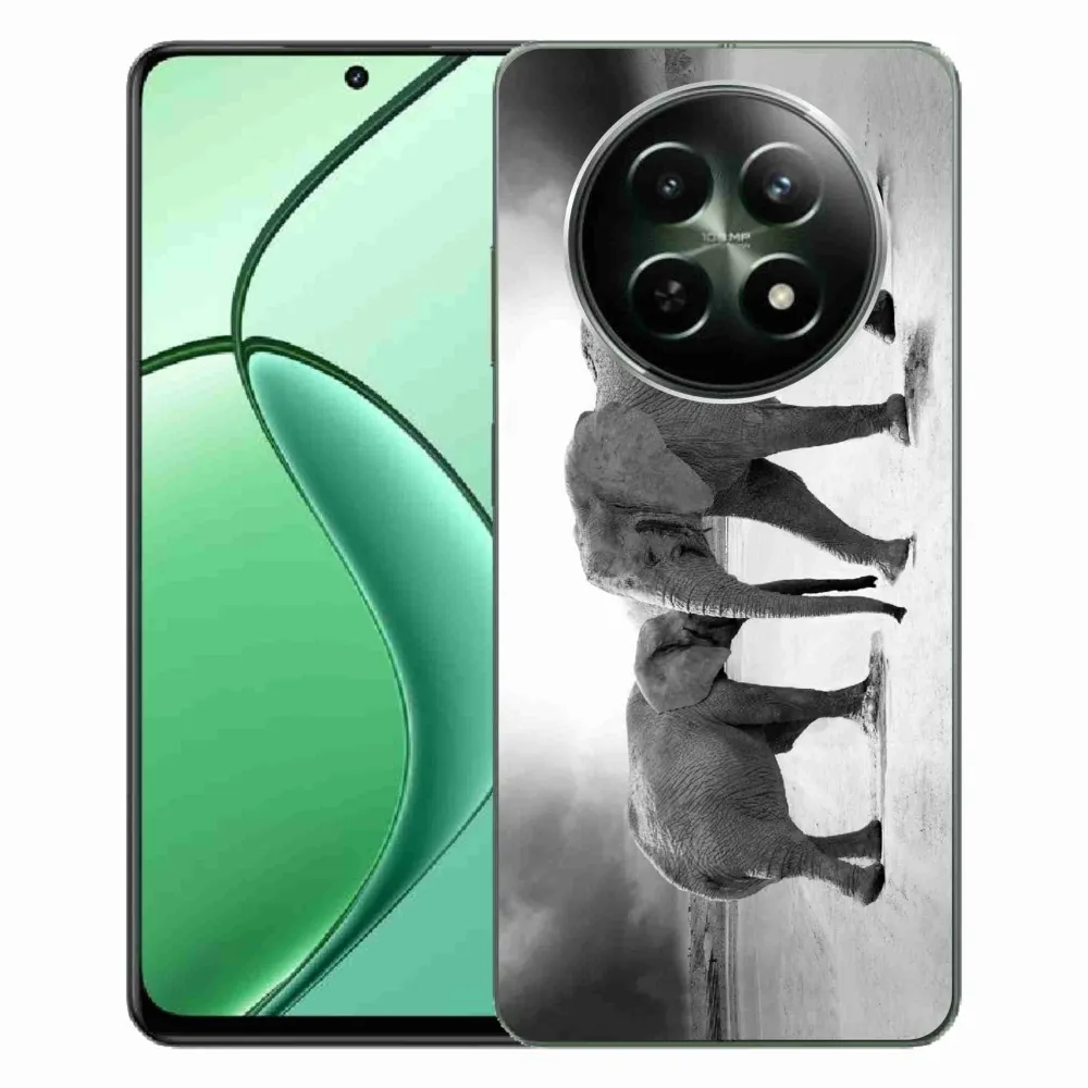 Gél borítás mmCase a Realme 12 5G/12x 5G készülékhez - fekete és fehér elefántok