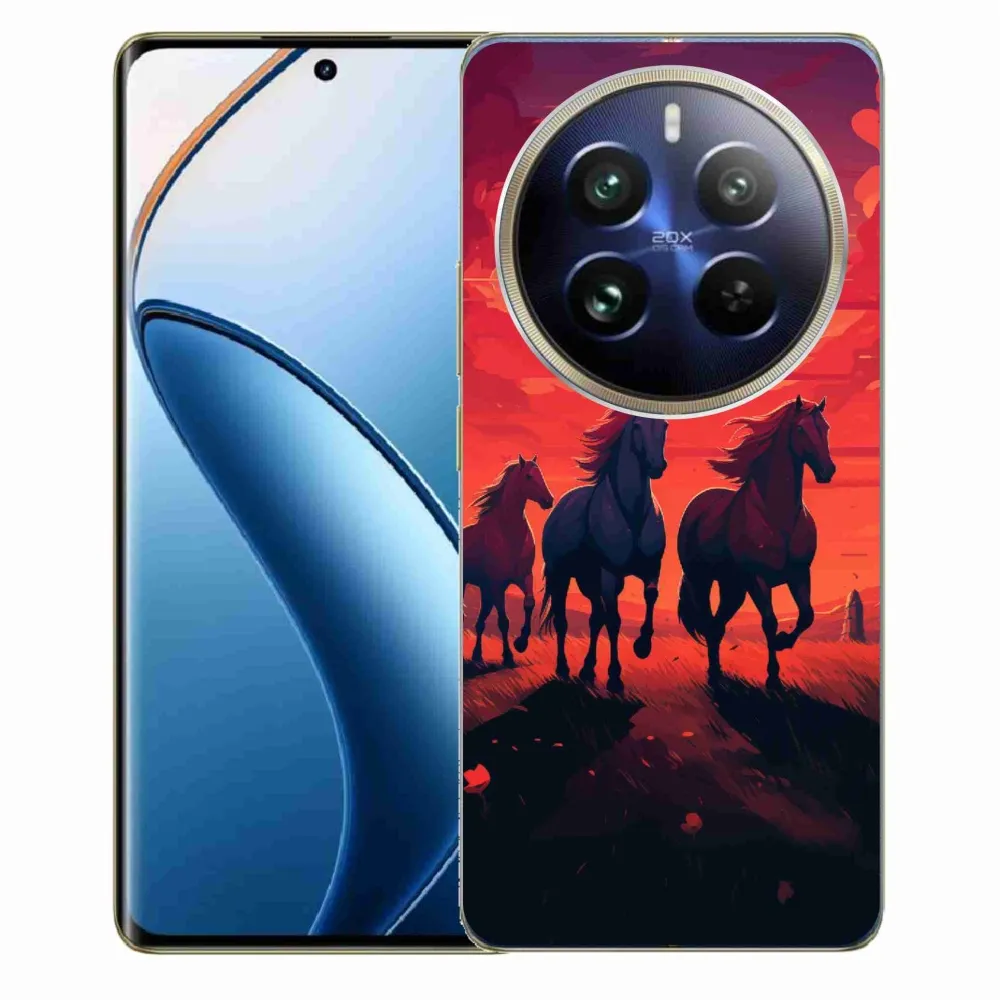 Rugalmas zselés tok mmCase képpel a Realme 12 Pro 5G/12 Pro+ 5G számára - lovak és naplemente