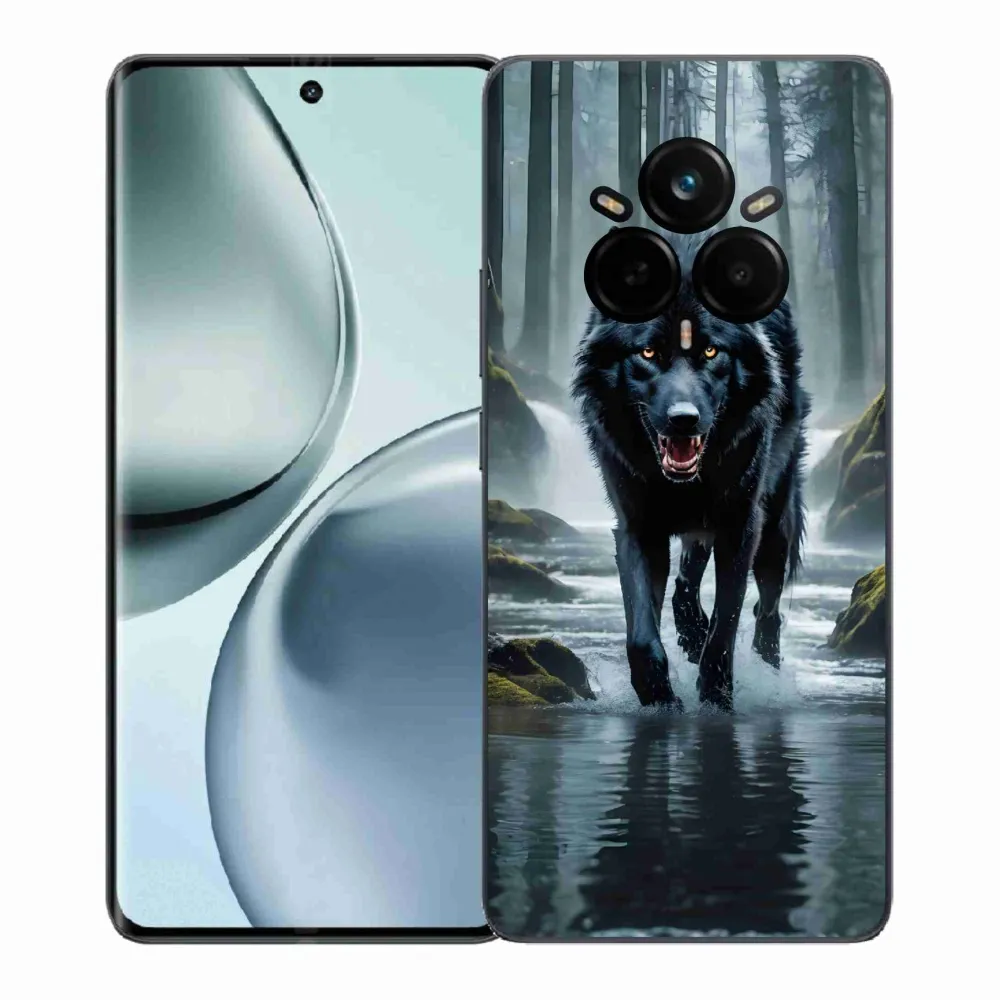 Rugalmas zselés tok mmCase képpel a Realme 14 Pro 5G számára - fekete farkas