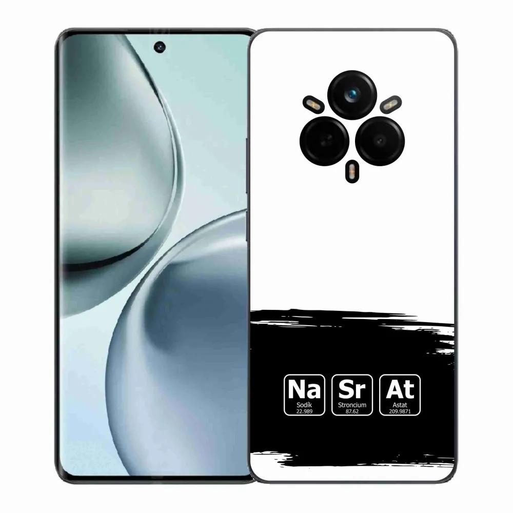Rugalmas zselés tok mmCase a Realme 14 Pro 5G képével - kémiai elemek fekete és fehér háttérrel