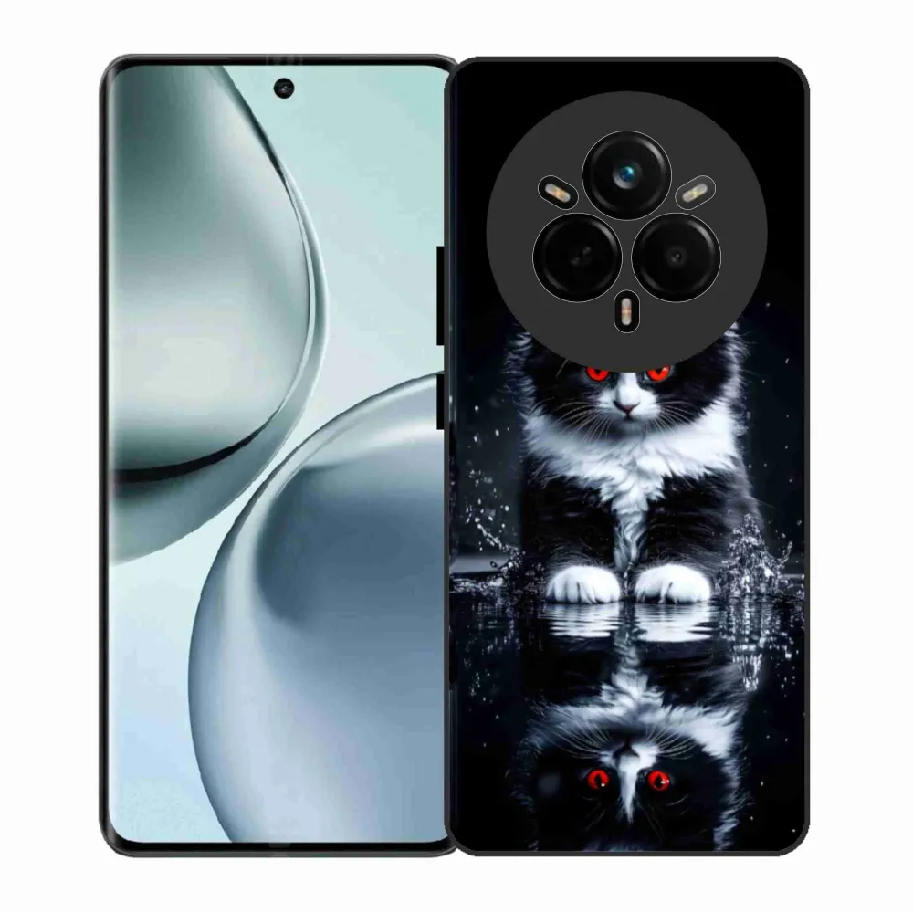 Rugalmas zselés tok mmCase képpel a Realme 14 Pro 5G számára - fekete-fehér cica