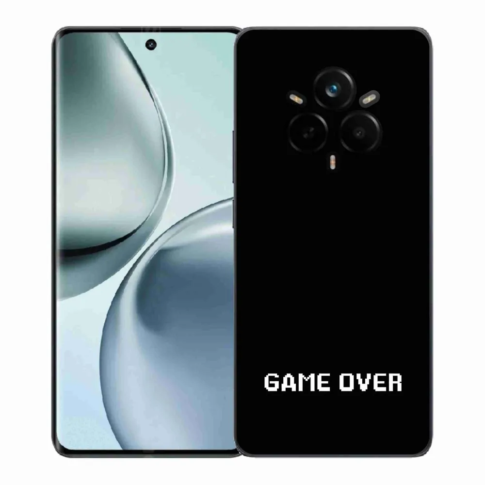 Rugalmas zselés tok mmCase a Realme 14 Pro 5G képével - játék fekete háttérrel