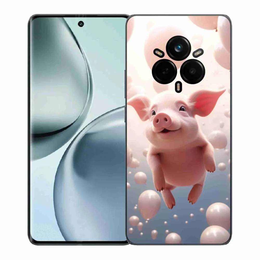Rugalmas zselés tok mmCase képpel a Realme 14 Pro+ 5G számára - malacka lufikkal