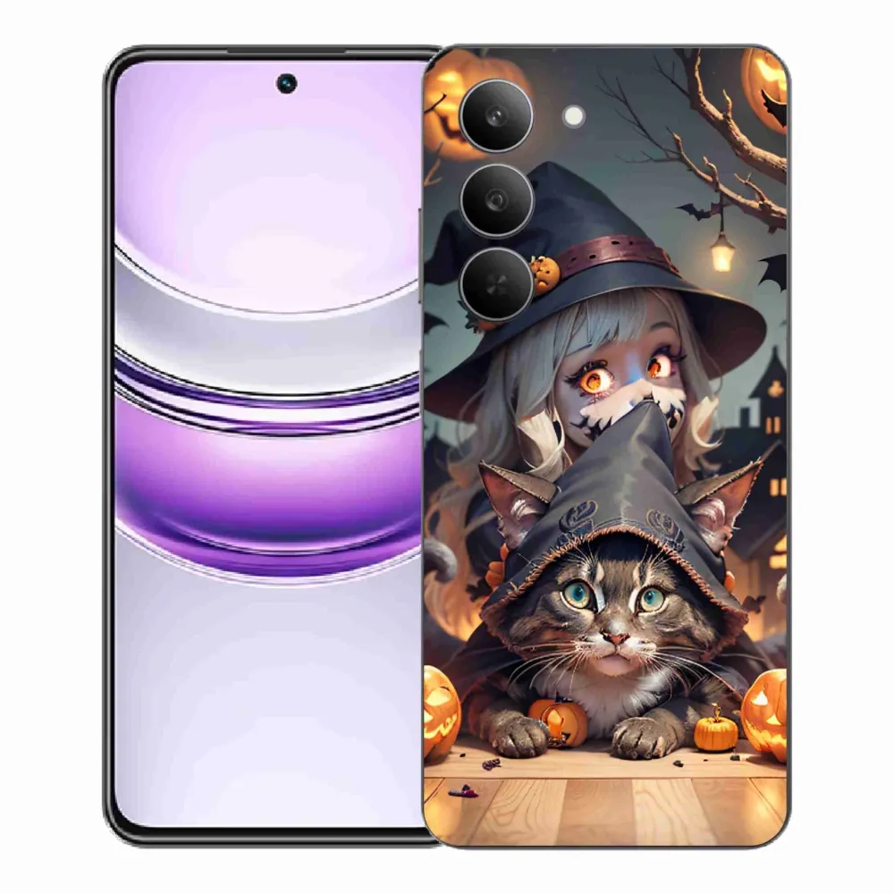 Rugalmas zselés tok mmCase képpel a Realme 14x 5G számára - boszorkány macskával