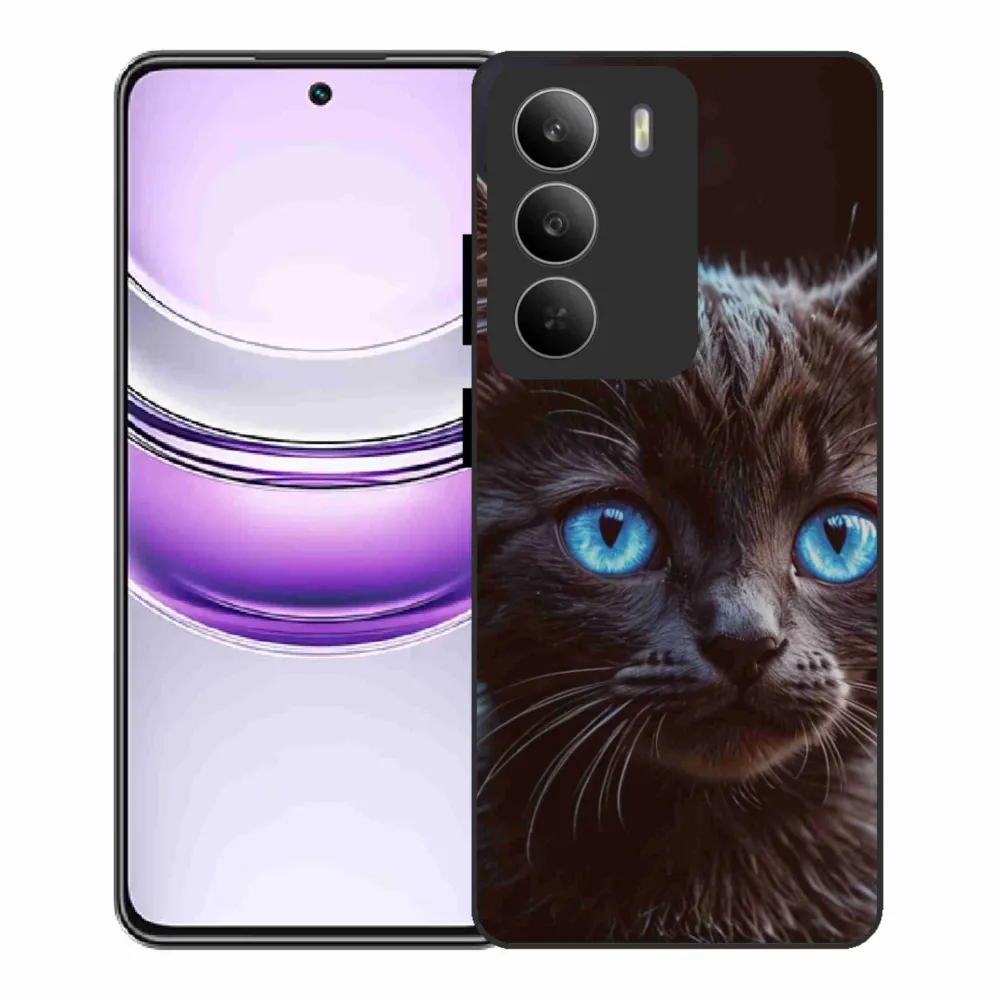 Rugalmas zselés tok mmCase képpel a Realme 14x 5G számára - fekete cica 2