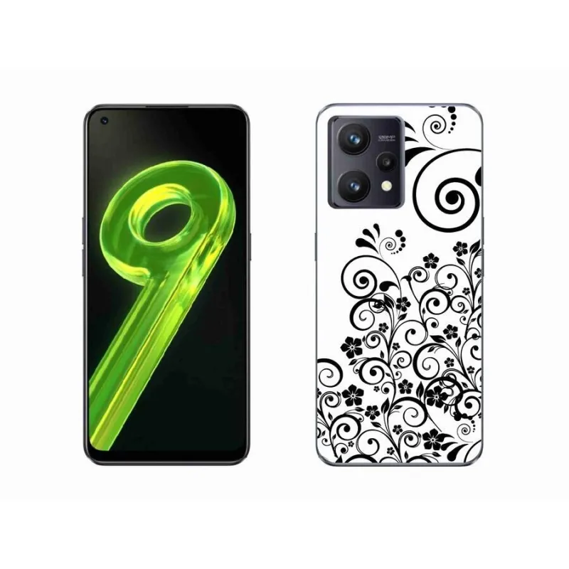 Gél borítás mmCase a Realme 9 4G készülékhez - fekete-fehér virágminták
