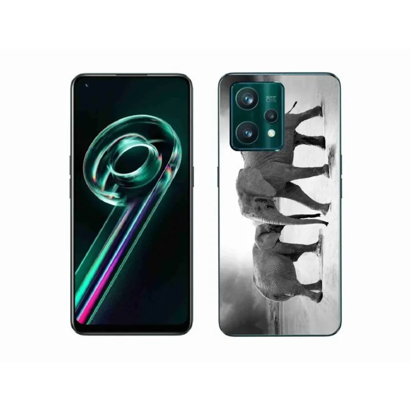 Gél borítás mmCase a Realme 9 Pro+ 5G készülékhez - fekete és fehér elefántok