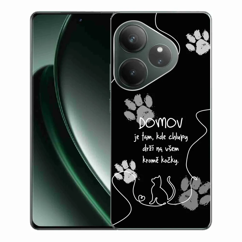 Rugalmas zselés borító mmCase a Realme GT 6 5G/GT 6T 5G képével - macska motívum fekete háttérrel