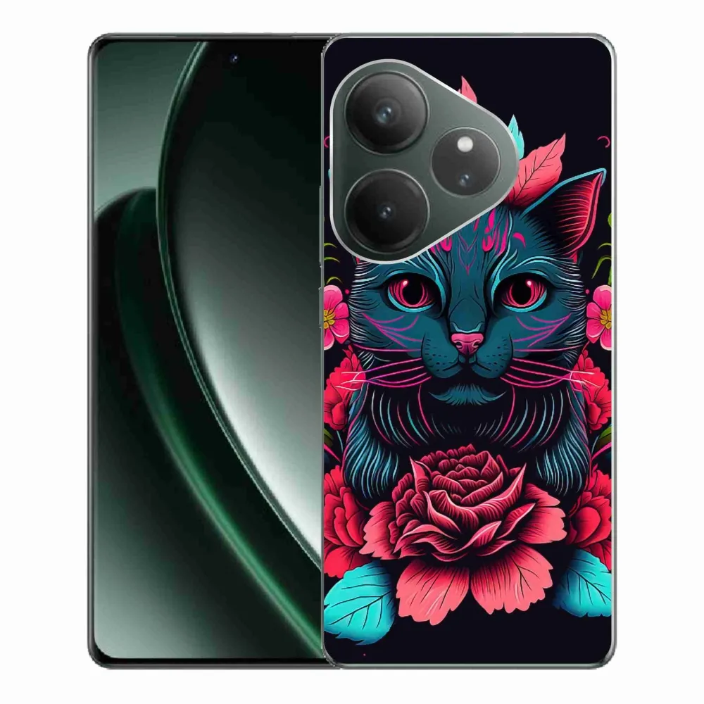 Rugalmas zselés borító mmCase a Realme GT 6 5G/GT 6T 5G képével - virágok és macskák