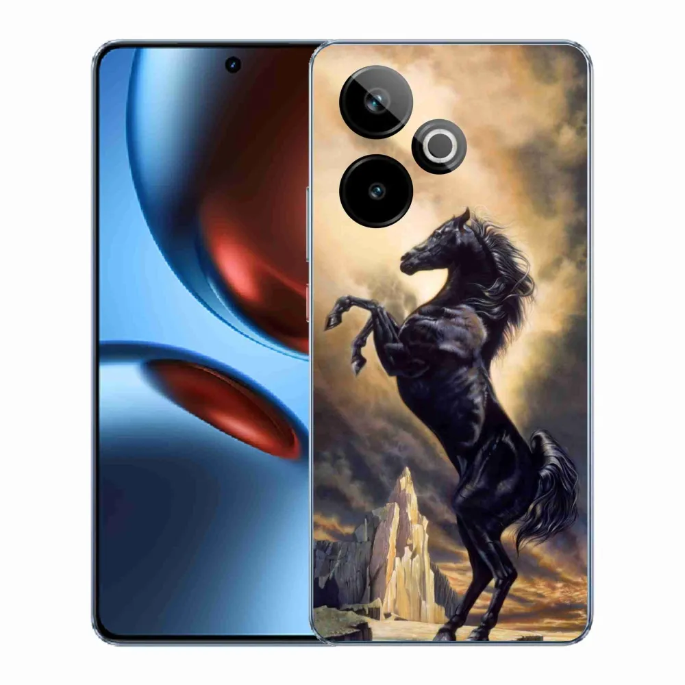 Rugalmas zselés tok mmCase képpel a Realme GT 7 5G/GT 7T 5G számára - fekete rajzfilmes ló