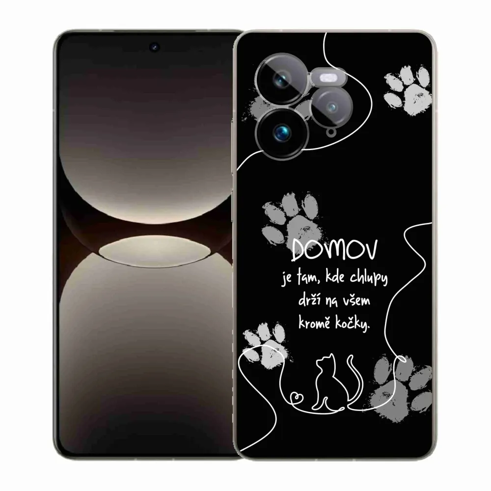 Gél borítás mmCase a Realme GT 7 Pro 5G készülékhez - macska motívum fekete háttérrel