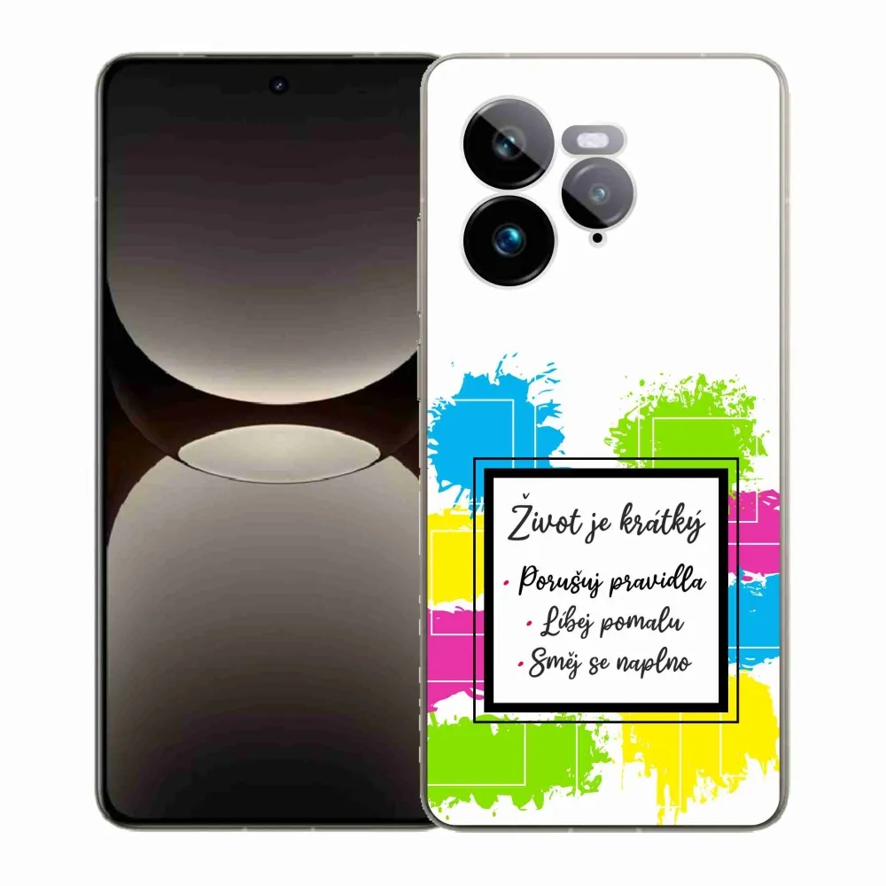 Rugalmas zselés tok mmCase a Realme GT 7 Pro 5G képével - idézet 5 fehér háttérrel