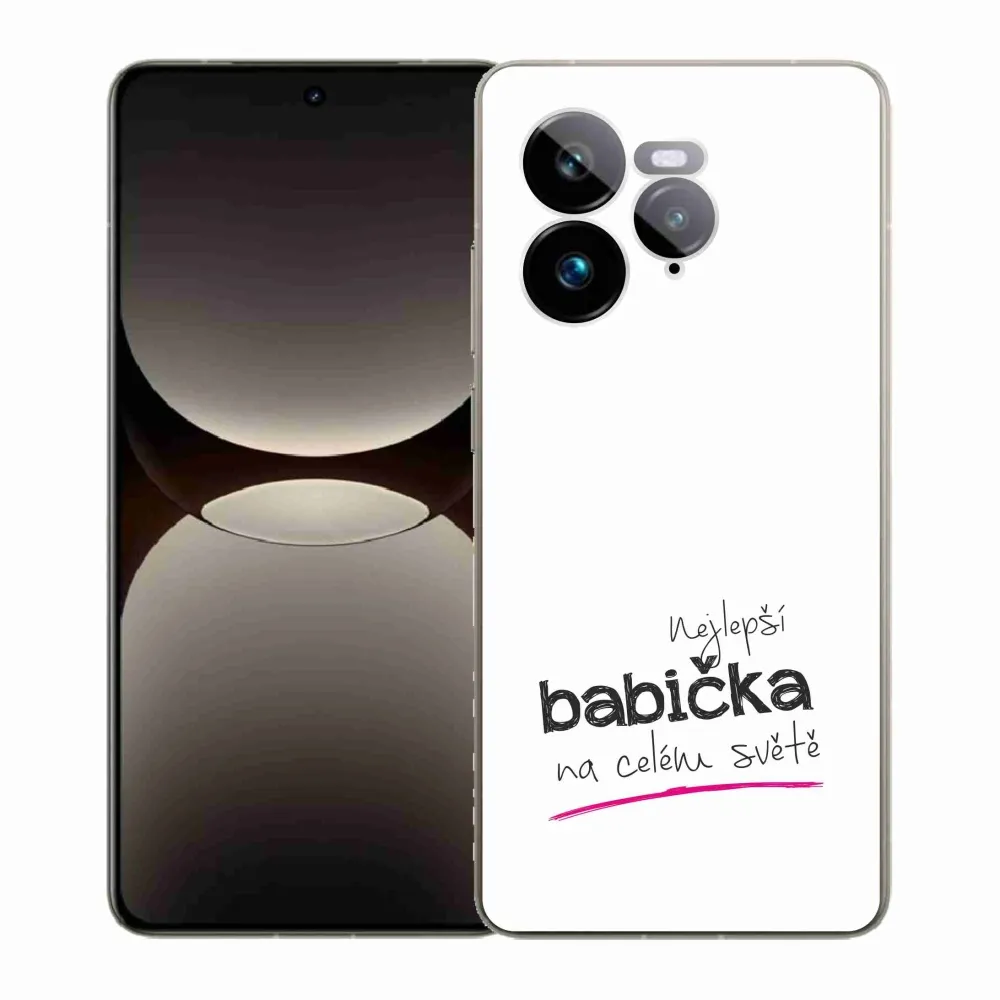 Rugalmas zselés tok mmCase a Realme GT 7 Pro 5G képével - legjobb nagymama 4 fehér háttérrel
