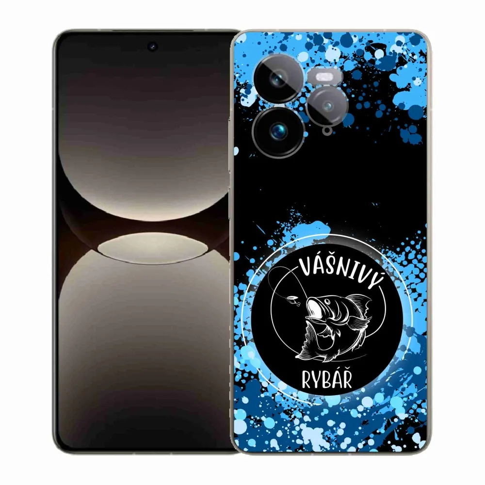 Rugalmas zselés tok mmCase a Realme GT 7 Pro 5G képével - szenvedélyes halász fekete háttérrel