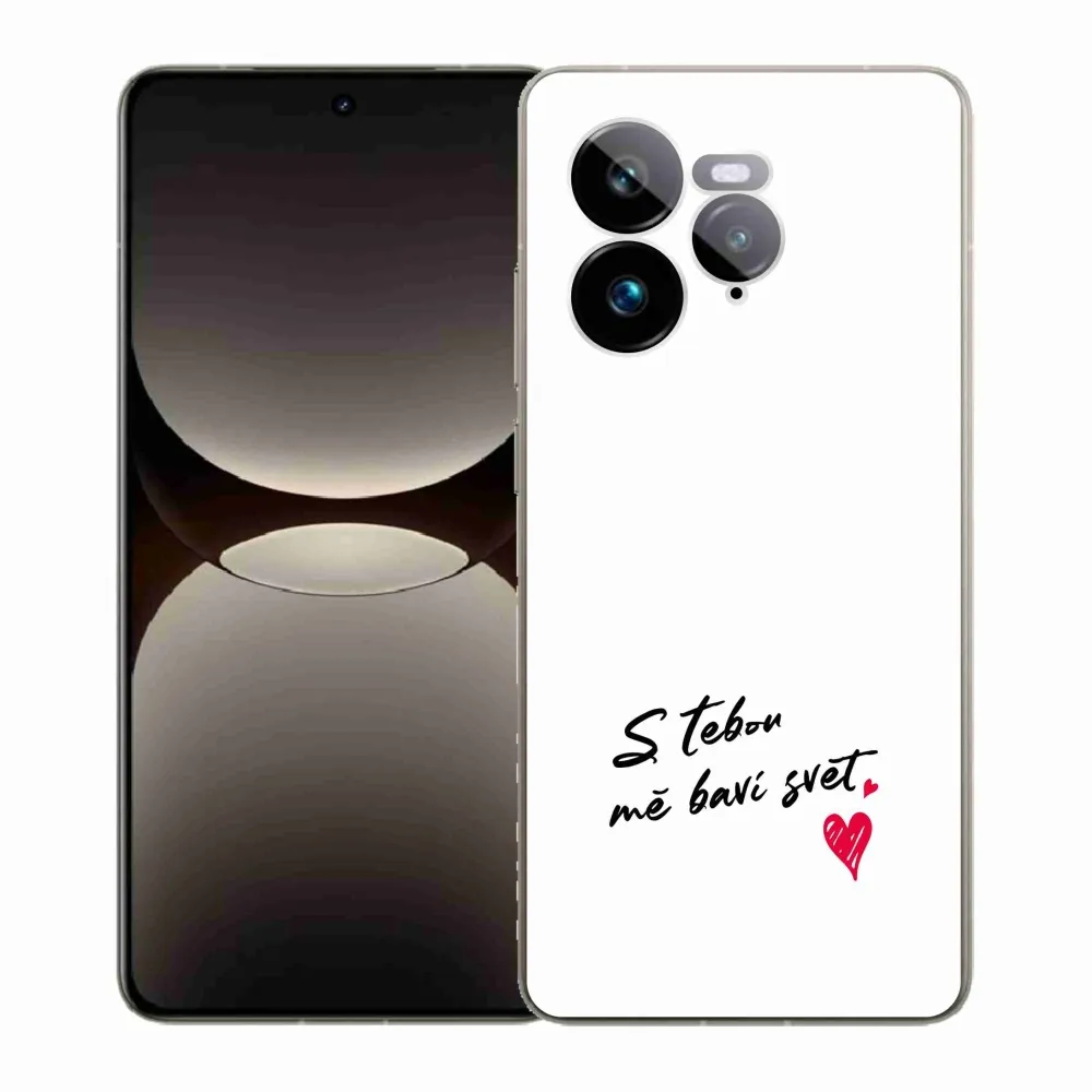 Rugalmas zselés tok mmCase a Realme GT 7 Pro 5G képével - szerelmes szöveg 1 fehér háttérrel