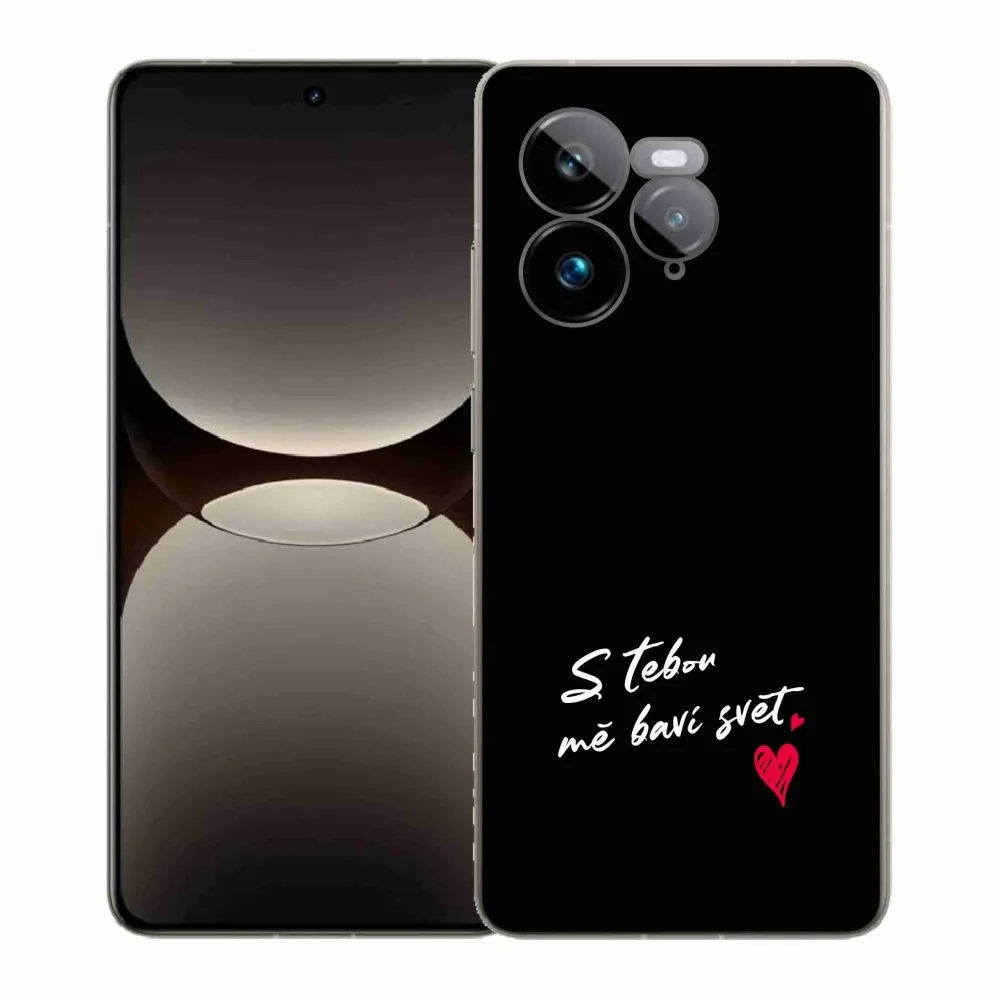 Rugalmas zselés tok mmCase a Realme GT 7 Pro 5G képével - szerelmes szöveg 1 fekete háttérrel