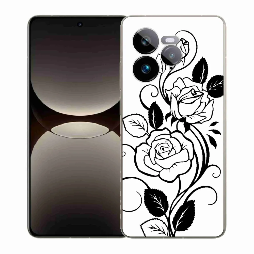 Rugalmas zselés tok mmCase képpel a Realme GT 7 Pro 5G számára - fekete és fehér rózsa