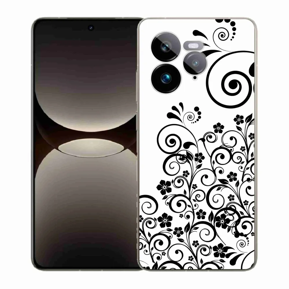 Rugalmas zselés tok mmCase a Realme GT 7 Pro 5G képével - fekete és fehér virágminták